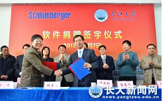 1、2012年12月,斯伦贝谢公司为学院捐赠油气藏分析软件,其总价值800多万美元。该软件主要包括2011Techlog软件包、2011Petrel软件包、2011Eclipse软件包和Ocean软件开发包。
