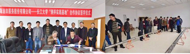 3、2014年11月,中海油服为学院捐赠了基本型储层特性测井系统、增强型旋转式井壁取芯测井系统二套设备及测井处理软件系统,其总价值1000余万元并共建“中海油田股份有限公司——长江大学测井实践基地”。