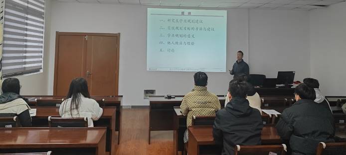 蔡明老师通过个人亲身经历和大量实例分析分别从“学业规划的意义”、“研究生学业规划建议”、“实现规划目标的方法与建议”、“他人做法与经验”等几个方面讲解了研究生学业规划的必要性,并给出了学业规划和实现目标的建议。蔡明老师鼓励同学们尽早做好学业规划,并付诸行动努力实现自己的目标,早出成果多出成果,为更好实现个人价值、创造美好未来、报效国家和社会奠定坚实基础。