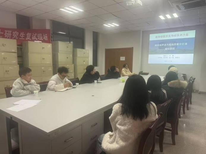 活动首先由曹晓月副教授和黄鑫副教授分别分享了各自在论文撰写方面的宝贵经验。他们从选题方向、逻辑结构到投稿策略等多个角度进行了深入剖析,并结合自身经历为青年学者提供了实用建议。两位导师表示,高质量的学术论文不仅需要扎实的研究成果,还要在表达方式上注重清晰性和逻辑性,同时,两位导师着重强调了,作为学生,对于论文的撰写,需要及时与导师做好沟通,在争取导师同意后再根据导师意见发表论文。随后,范娜副教授作了题为《频率域声波方程有限差分正演模拟研究》的精彩报告。她向大家讲述了频率域正演与时间域的正演的根本区别,以及频率域正演方法的优势,并向大家详细展示了她课题组在该领域的最新研究成果。