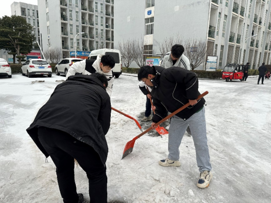 (通讯员:游菁 谭辰阳)新学期开学在即,在冰雪低温天气影响下,华林公寓的沥青路面镀上了一层厚厚的冰雪,为学生出行带来了极大的不便。地物师生们纷纷拿起铁锹铲浴“雪”奋战除冰,只为凿出一条条通往学生公寓楼和教学楼的护学道。