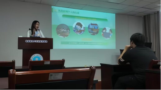 宣讲团成员郑欣妍同学介绍了长江文化科普宣讲团的成立背景、宗旨以及近年来开展的一系列公益活动 。她强调:“长江是中华民族的母亲河,保护长江就是保护我们共同的家园。我们希望通过我们的努力,让更多人了解长江文化,关注长江生态,共同守护这条生命之河。”