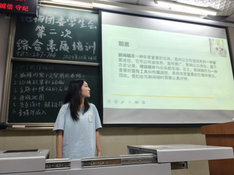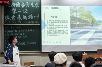 (通讯员:江梓恒)2024年10月26日晚18时,yL23411永利官网登录团委学生会于东1-107室顺利举行第二次“臻善”系列学生干部综合素质培训会。此次培训会由综合事务部江梓恒和宣传部杨梦瑶主讲,重点聚焦礼仪、演讲和公文写作培训,面向全体学生展开。