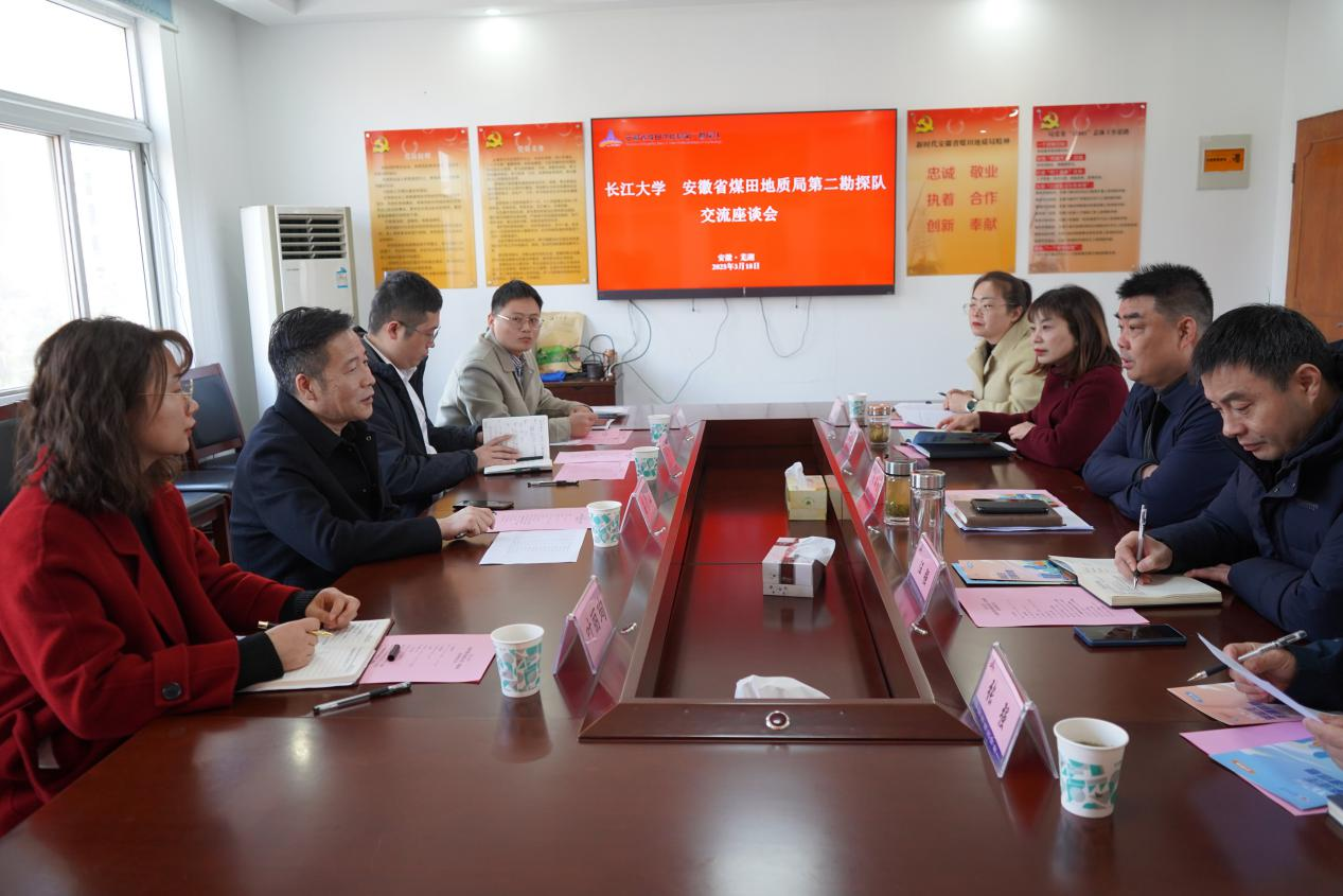18日,崔青山一行赴芜湖安徽省煤田地质局第二勘探队,与队党委委员、副队长李海蕾(主持工作)举行座谈。李海蕾重点介绍了企业在煤炭资源勘探、地质工程服务等领域的技术积累和行业影响力。崔青山强调,长江大学作为能源领域特色高校,其“地质资源与地质工程”等学科与勘探队业务高度契合,提出通过“订单式”人才培养、在职人员技能培训等合作模式,定向输送实践型技术骨干,实现校企人才共育闭环。