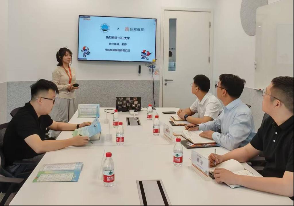 18日上午,焦简金带队走访北京聪明核桃教育科技有限公司武汉基地。企业全国校招负责人赵鹏程介绍了编程教育行业发展态势及复合型人才需求,提出校企合作意愿,企业武汉基地校招负责人李梦宇就企业文化、办公环境和公司架构进行了重点介绍,焦简金介绍学院学科专业优势和毕业生情况。双方围绕人才培养、就业供需、常态化互访等深入交流。