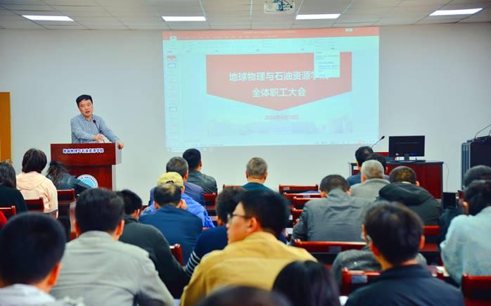 为切实保证新学期各项工作整体有序推进,4月11日下午,学院在石油科技大楼A405召开全体教职工大会。会议由分党委书记周俊主持。