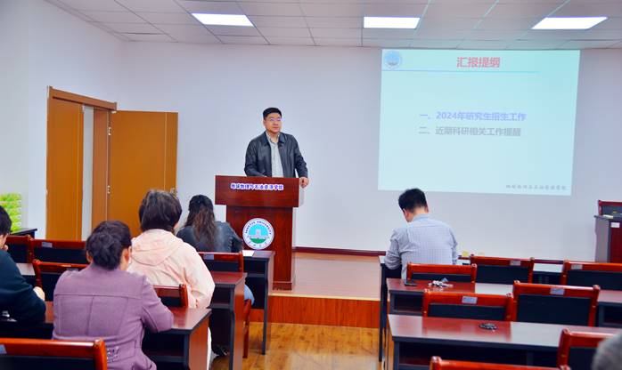 会上,赵彬副院长(主持工作)通报了2024年研究生招生情况,布置了近期科研相关工作。要求大家认真谋划2024年度省部级科学技术奖和国家专利申报以及国家、省部级项目的申报工作。