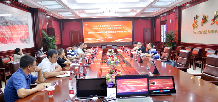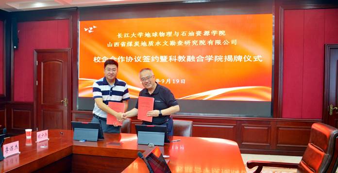 9月19日上午,学院在石油科技大楼知音厅与山西省煤炭地质水文勘查研究院有限公司(以下简称“勘查研究院”)郭勇洪总经理一行开展座谈交流,并签订校企合作协议。分党委书记周俊、副院长赵彬(主持工作)以及学院所属四个系的系主任和部分教师代表参加活动。