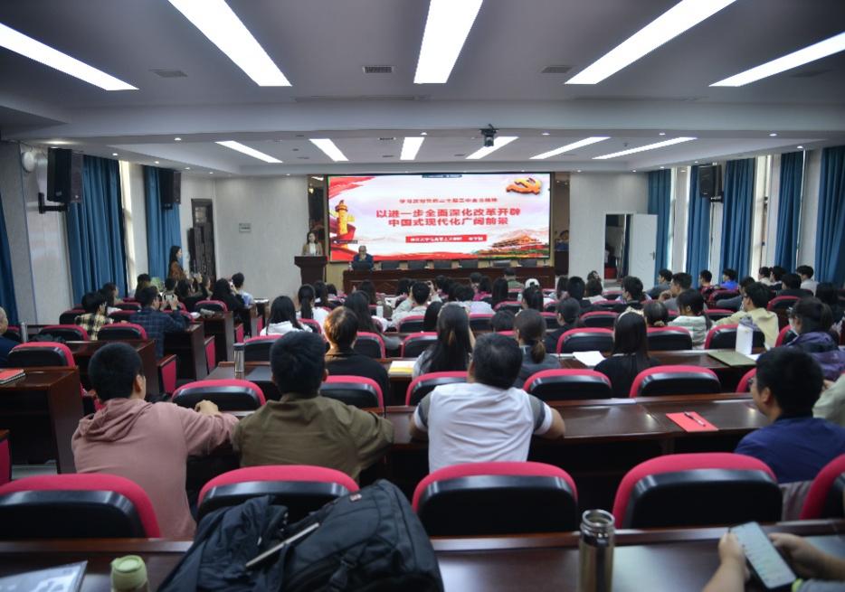 10月29日,yL23411永利官网登录在武教B110报告厅组织开展了党的二十届三中全会精神专题学习,特别邀请了马克思主义学院姜学勤教授前来授课,全体教职工、学生党员以及入党积极分子一同参与学习。