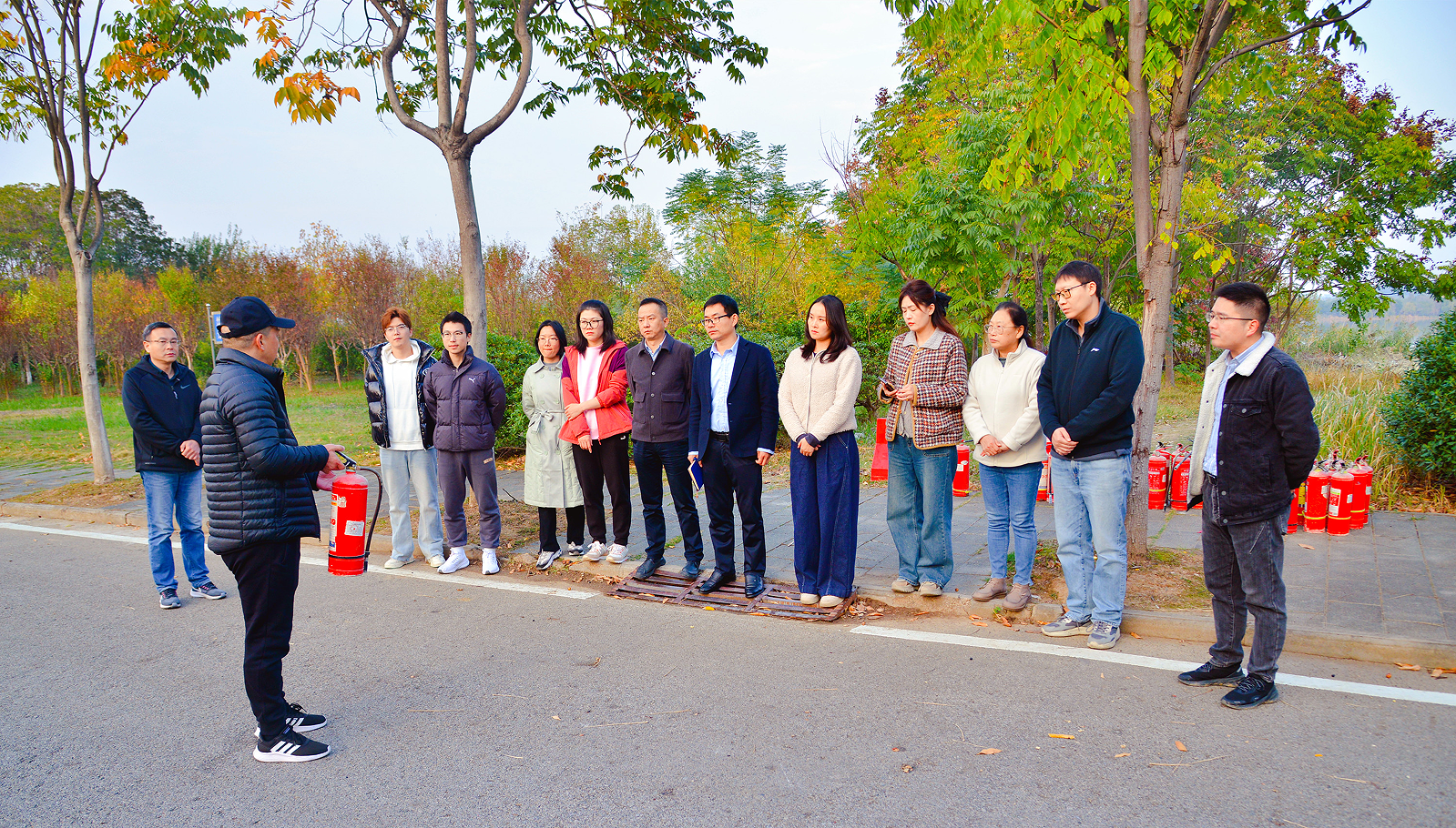 下午4:30,模拟火灾现场设置在建筑材料垃圾场,专业消防人员首先进行了火灾常识的讲解,包括火灾的常见原因、初期火灾的扑救方法、逃生技巧等。随后,参与的师生在消防人员的指导下,进行了实际操作演练。