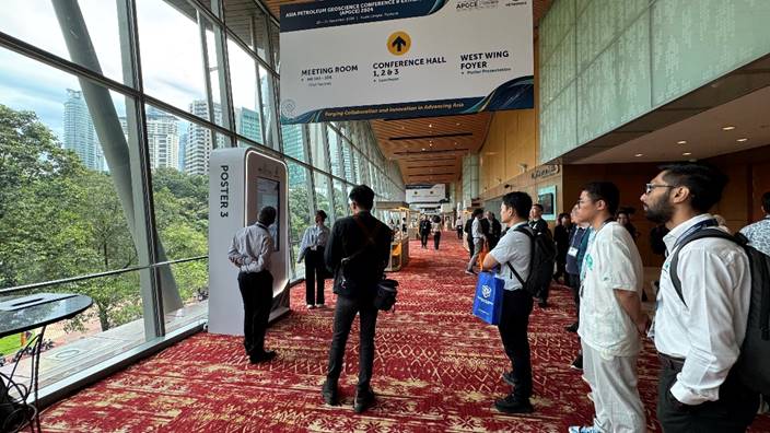 亚洲石油地球科学会议及展览(Asia Petroleum Geoscience Conference and Exhibition, APGCE)由欧洲地质学家与工程师协会(EAGE)和马来西亚国家石油公司共同主办。2024年APGCE会议主题为“共建创新,推动亚洲发展”(Forging Collaboration and Innovation in Advancing Asia),旨在推动地球科学新技术的发展和应用。此次参会扩大了我校在亚洲国家间的影响力,参会师生通过与国际同行间的交流,不仅获取了最新的科研动态和前沿技术,还开阔了国际视野、获得了新的科研思路,为后续科研工作奠定了坚实的基础。.